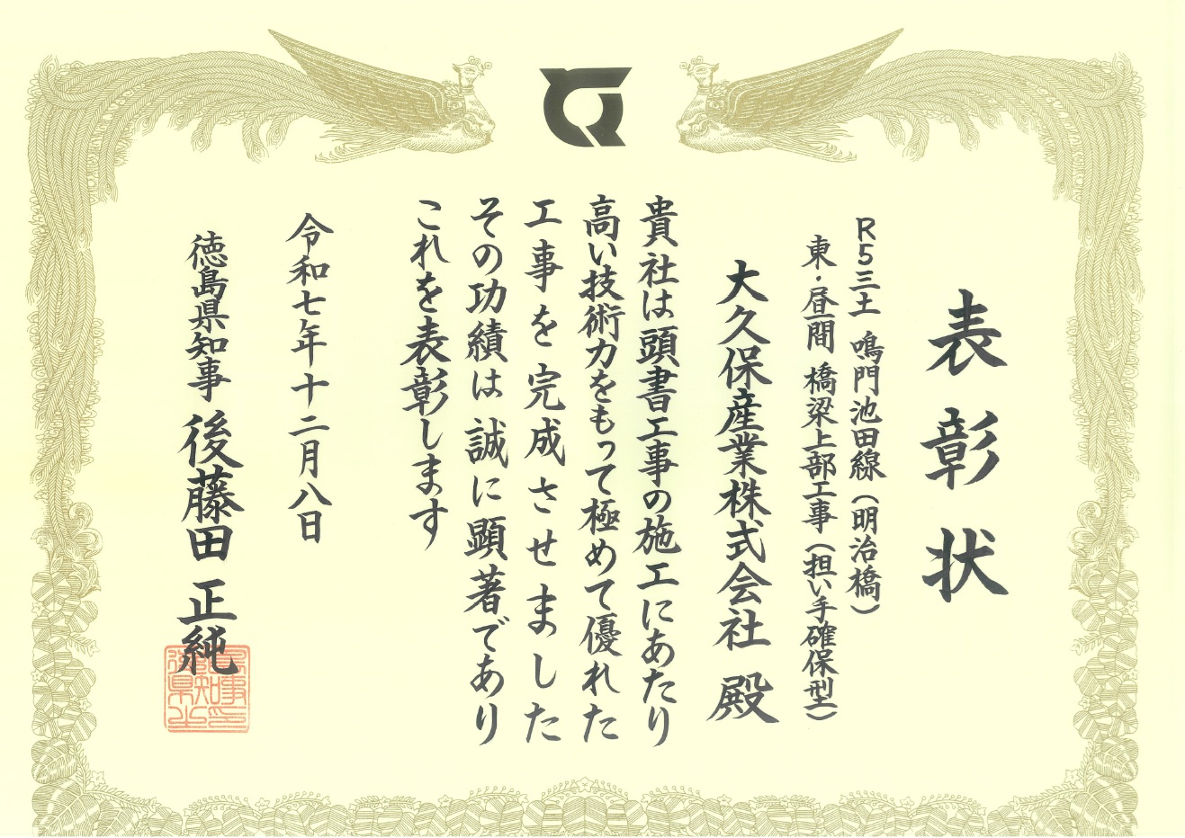 令和7年度優良工事表彰【知事賞】を受賞しました!